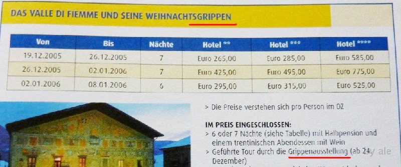 Die Val di Fiemme lädt zur Grippenausstellung: Schweine- oder Vogelgrippe einmal hautnah erleben, was will man im Urlaub mehr?